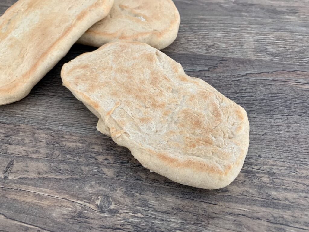 - Die Panini-Brote nach 10 Minuten wenden. Den Backvorgang mit der zweiten Hälfte des Teigs wiederholen.