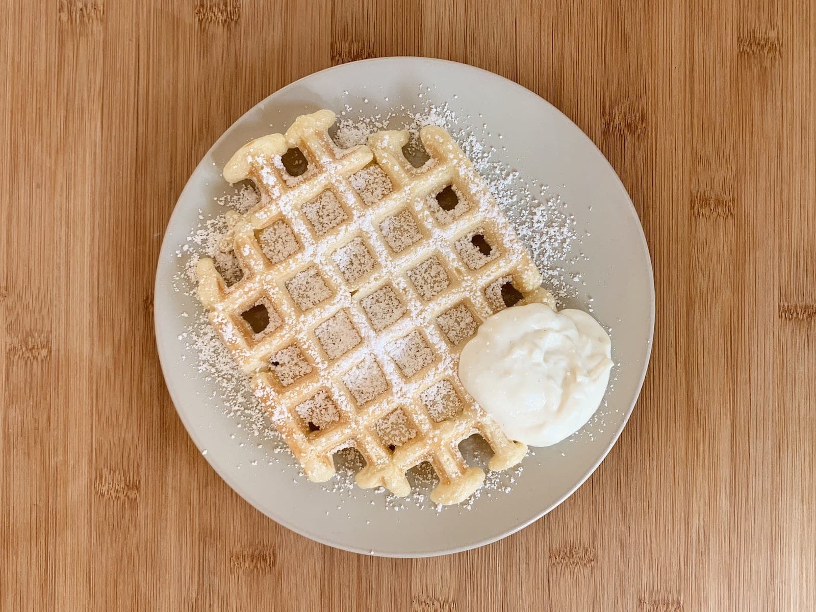- Fertige Waffeln kannst du im Ofen bei 60 °C warm halten. Vor dem Servieren die Vanillequark-Waffeln mit Puderzucker bestreuen.